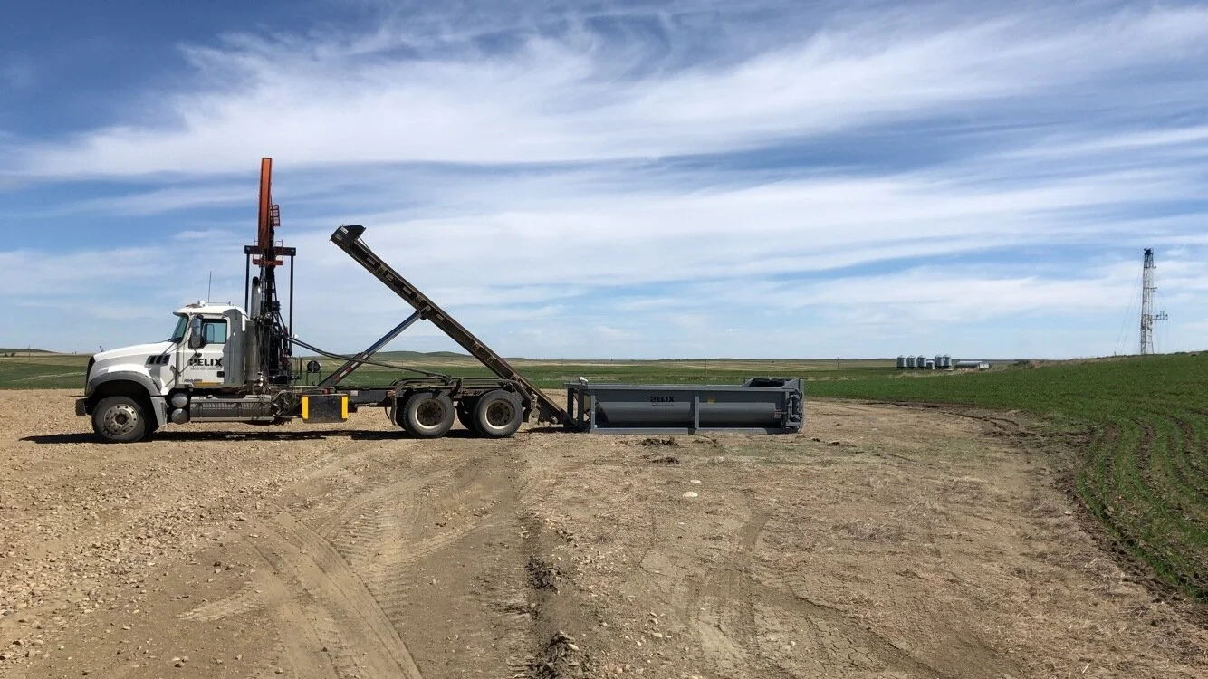 Helix Construction Ltd. is the only company in Southwest Saskatchewan to offer 14-yard, sealed cement return bins. These bins offer a safer, quicker, and more efficient way of disposing of the cement generated on drilling sites. Land owners prefer using these cement bins for minimal impact and disturbance on their land and easy clean up.